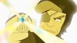 Gozu is a very serious and competent person. However, he tends to wear an eyepatch over his right eye, despite the fact that there is nothing physically wrong with said eye. Gozu also has a very close bond with his Aggron, allowing it to Mega Evolve. In addition, he has a rational mindset; in The Prism Between Light and Darkness!, he knew better than to pursue the Ultra Guardians through the Ultra Wormhole after the airship had been damaged.