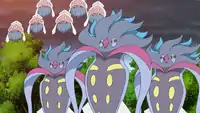 The evil Malamar from A Conspiracy to Conquer!, along with two others, tried to use the top of Grace Tower as the site for them to carry out their grand design - using massive amounts of energy generated by six strange devices in order to alter the world's environment. Ash, his friends, Team Rocket, and Officer Jenny, caught up to them to see what they were doing and try to stop them. The trio of evil Malamar managed to capture everyone except for Clemont, James, and Meowth, in which they escaped.