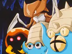 When Ash and his friends were traveling through the canyon in Attack of the Prehistoric Pokémon, they learned that some ancient Pokémon Fossils were found recently. Along with Gary, the kids began digging in the canyon to look for the Fossils. Meanwhile, Team Rocket had planned to blow up the entire canyon to collect the Fossils with dynamite, which would have placed several innocent bystanders in mortal danger.