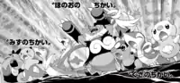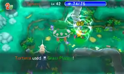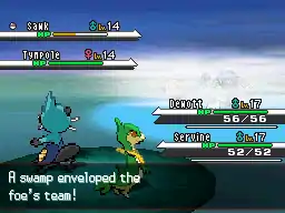 | Servine sends a barrage of leaves at the opponent. When combined with Water Pledge, Servine forms the attack into a swamp that sprouts vines that surround the opponent. | |||
