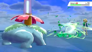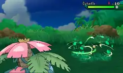 | Serperior sends a barrage of leaves at the opponent. When combined with Water Pledge, Serperior forms the attack into a swamp that sprouts vines that surround the opponent. | |||