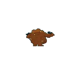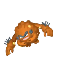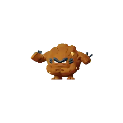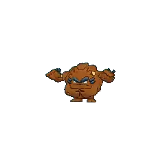 Graveler is a bipedal, boulder Pokémon. Its round body is covered with small bumps and it has a rocky crest above its small eyes and mouth. It has four arms, each with a three-fingered hand. Its second pair of arms is typically kept tucked against its chest. It was shown in Pokémon Snap that, despite having legs, it can revert to a legless form. This grants it the ability to float.