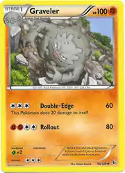 Double-Edge and Rollout are both moves in the Pokémon games that Graveler can learn. This card's Pokédex entry comes from Pokémon X.