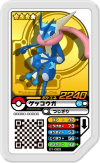 Greninja (Japanese: ゲッコウガ Gekkouga) is a Grade 3 Pokémon Ga-Olé disk. It is part of the first set.