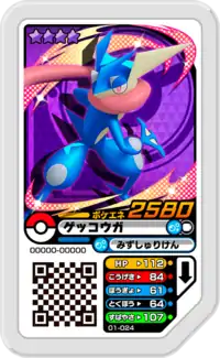 Greninja (Japanese: ゲッコウガ Gekkouga) is a Grade 4 Pokémon Ga-Olé disk. It is part of the first set.