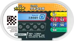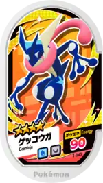 Greninja (Japanese: ゲッコウガ Gekkouga) is a Grade 4 Pokémon Mezastar tag. It is part of the first set.