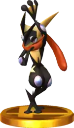 Greninja appears as three trophies, with its Final Smash trophy being exclusive to the Wii U version of the game.
