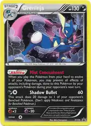 Greninja (Japanese: ゲッコウガ Gekkouga) is a Darkness-type Stage 2 Pokémon card. It is one of the XY Black Star Promos.