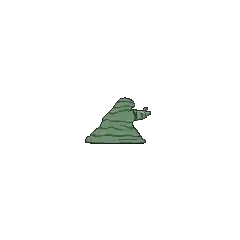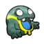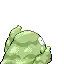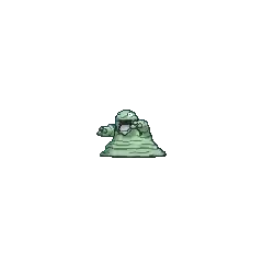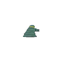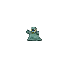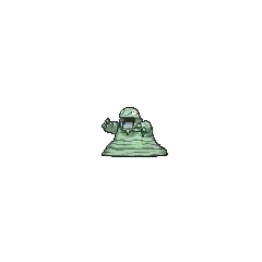 Grimer was brought to Alola to deal with the excess waste generated by the region's increased population. Alolan Grimer eats solid garbage instead of sludge; this new diet has caused its body composition and form to change. Alolan Grimer's body is green with a line of yellow sludge along its lower lip that extends around behind its head, a bright blue tongue, and small black crescent-shaped spaces behind its eyes. It also has two blunt "teeth" in its upper jaw, which are actually crystallized toxins formed by its diet. It is not known how to break down these toxic crystals, but direct contact with them is known to be dangerous. Lethal poisons leak out of Grimer's body when these crystals fall out. Because it produces and stores its toxins within its body, Alolan Grimer does not produce a foul stench like the standard version.[1][2]