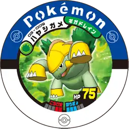 Grotle (Japanese: ハヤシガメ Hayashigame) is a Pokémon Battrio puck. It is a part of the Mewtwo's Challenge expansion.