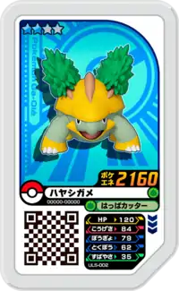 Grotle (Japanese: ハヤシガメ Hayashigame) is a Grade 2 Pokémon Ga-Olé disk. It is part of the fifth Ultra Legend set.