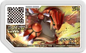 Groudon (Japanese: グラードン Groudon) is a Grade 5 Pokémon Ga-Olé disk. It is part of the second Dash set.
