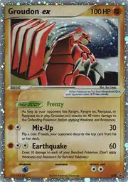 Groudon ex (Japanese: グラードンex Groudon ex) is a Fighting-type Basic Pokémon-ex card. It is one of the Nintendo Black Star Promos.