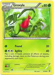 Pound and Agility are both moves in the Pokémon games that Grovyle can learn. This card's Pokédex entry comes from Pokémon Y.