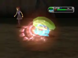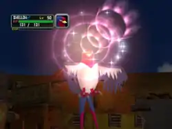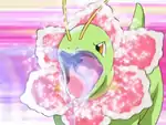 | Meganium opens its mouth and lets out a loud cry that releases white shockwaves from its mouth, making the opponent calm down. | |||