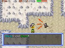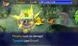 In Red Rescue Team, Blue Rescue Team, Explorers of Time, Explorers of Darkness and Explorers of Sky, Growl is a move with 20PP and 100% accuracy. It targets all enemies the same room, lowering their Attack by one stage each. In hallways, this move targets Pokémon up two tiles away (or one in one-tile darkness). This move is affected by Muzzled status condition, Magic Coat and Taunt. Being a sound-based move, it is blocked by Soundproof.