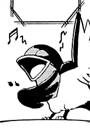 | Taillow puts one of its wings on its chest and sings, making music notes fly around it. | |||