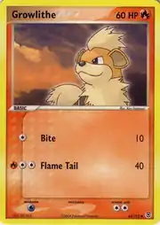 Growlithe (Japanese: ガーディ Gardie) is a Fire-type Basic Pokémon card. It was first released as part of the EX FireRed & LeafGreen expansion.