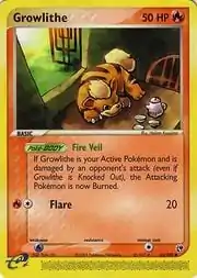 Growlithe (Japanese: ガーディ Gardie) is a Fire-type Basic Pokémon card. It is part of the EX Sandstorm expansion.