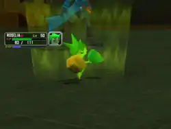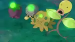 Two light green orbs form in front of the leaves on the side of its body and it fires light green beams from the orbs at the target, giving its energy to it. | ||