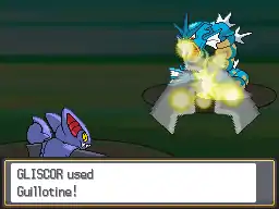 | One or both of Gliscor's claws glows light blue or white and it grabs the opponent's neck, slamming it into the ground. If the move lands, the opponent is instantly knocked out. | |||