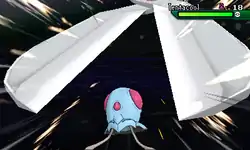 | Gligar's claws glow white and it strikes the opponent with it; or, Gligar grabs the opponent by the neck with a glowing white claw and slams it into the ground. If the move lands, the opponent is instantly knocked out. | |||
