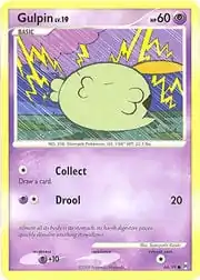 Gulpin (Japanese: ゴクリン Gokulin) is a Psychic-type Basic Pokémon card. It is part of the Arceus expansion.
