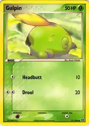 Gulpin (Japanese: ゴクリン Gokulin) is a Grass-type Basic Pokémon card. It is part of the EX Emerald expansion.