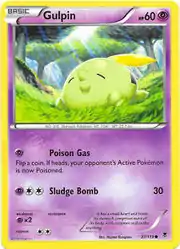 Gulpin (Japanese: ゴクリン Gokulin) is a Psychic-type Basic Pokémon card. It is part of the Phantom Forces expansion.