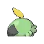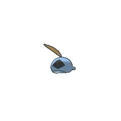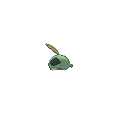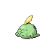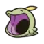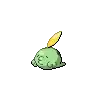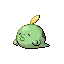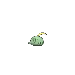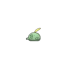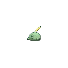 Gulpin is a round, green, amorphous Pokémon. It has a black diamond marking on its back and a yellow feather-like adornment on its head. A female has a shorter feather than a male. Its face consists of puckered lips and slanted eyes that are usually closed. It has two stubby appendages that are the same shape as its lips. It swallows anything of its own size whole since its stomach comprises most of its body. Its heart and brain are very small in comparison to its stomach. The unique stomach acid it has allows it to digest almost anything. When it is digesting, vile, overpowering gases are expelled. It lives in grasslands and savannas.