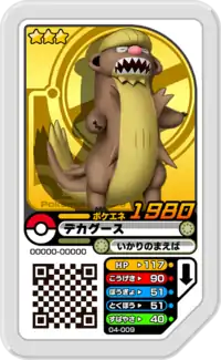 Gumshoos (Japanese: デカグース Dekagūsu) is a Grade 3 Pokémon Ga-Olé disk. It is part of the fourth set.