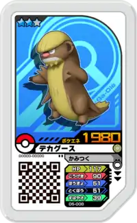 Gumshoos (Japanese: デカグース Dekagoose) is a Grade 2 Pokémon Ga-Olé disk. It is part of the fifth Dash set.