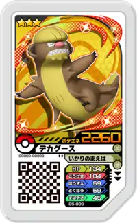 Gumshoos (Japanese: デカグース Dekagoose) is a Grade 3 Pokémon Ga-Olé disk. It is part of the fifth Dash set.