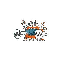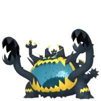 Guzzlord is said to feel like hard rubber. In order to eat, its tongue moves in a wave-like motion that pulls food towards its mouth.[1] There have been reports of it eating mountains and buildings whole. According to Wicke of the Aether Foundation, its constant hunger causes it to eat anything within reach of its two, pincer-like tongues. Despite its appetite, no droppings have ever been found. It is speculated to convert everything it consumes into energy with no waste leftover.