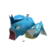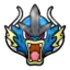 Gyarados is a serpentine Pokémon with a long body covered in slightly overlapping scales. It is mostly blue with a yellow underbelly, and it has a row of yellow spots down each side. Its mouth is very large and gaping, bearing four pointed teeth and yellow lips. It has one barbel and a small white fin on each side of its face. The barbels are white on a female and blue on a male. It has small, red eyes, a three-pointed, dark blue crest on its head, and four white, spiky dorsal fins. Gyarados's tail fin is similar in structure to the crest on its head, except with a thin, white fin spread between the points.