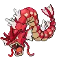 When it Mega Evolves, Gyarados becomes bulkier. The fins on its cheeks become longer and gain a yellow tint. Its crest is larger and black, and its barbels also gain considerable length. A large spike extends downward underneath its chin, and it now has a black underside with a red stripe around the edges. The yellow spots along its body are replaced by raised red scales, which propel Mega Gyarados through the water. Two large yellow fins with blue spines appear on its back. Most of the other fins along its back disappear, replaced by two rows of blue spikes. There are now four yellowish, spiky fins near its tail: two on its back and two on its underside. While its brain has a powerful destructive instinct, it will obey a Trainer it truly trusts. Mega Gyarados is tied with Hoopa Unbound as the tallest Dark-type.