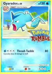 Gyarados (Japanese: ギャラドス Gyarados) is a Water-type Stage 1 Pokémon card. It is part of the Pokémon Rumble expansion.