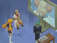 In an abandoned warehouse, Professor Oak is awake, though tied to a chair. Butch contacts Namba through a big screen. Professor Namba explains to Professor Oak that the mysterious viral lifeform Pokérus is an important component of the PPAP, which make ill Pokémon evolve at a faster rate. However, all of his specimens have died out. So he tells Professor Oak to tell him everything he knows about Pokérus and where it grows. Professor Oak refuses to talk, so Butch and Cassidy start the torture by scraping a nail across a piece of glass. Once Professor Oak has finished screaming, Cassidy asks if he is ready to talk. Professor Oak states that he will never talk and continues to stall, so they do it repeatedly.