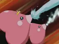 Butch and Cassidy now appear to stop the escape and set down the mecha ball to capture the Luvdisc. However, Caserin uses Double Team, and the two escape while Cassidy and Butch are confused. However, Butch and Cassidy also use the beam of ice and chase after them. The Luvdisc reach a cliff overlooking a fierce river. Butch and Cassidy manage to catch up and Butch attempts to capture them. Caserin looks to fight but Luverin tells him not to and Caserin kisses Luverin. The mouths stay connected, and the two float above the river like a butterfly. The Luvdisc land in a calmer part of the river, and Butch and Cassidy chase after them.