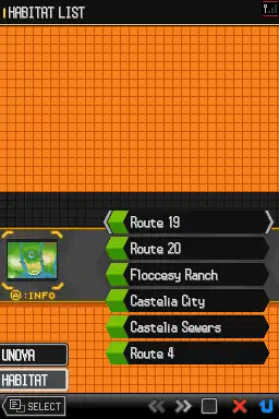 The Habitat List (Japanese: 生息地リスト Habitat List) is a Pokédex feature in Black 2 and White 2. It lists each area the player has visited in Unova, along with every Pokémon the player has seen or caught that can be found in that area. The player receives the Habitat List upgrade from Bianca in Floccesy Town after receiving the Basic Badge.