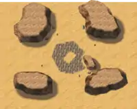 The second rocky terrain area is distinguished from the first by the exits having different stacks of stones at each exit, an item in the middle of the rocky terrain ring, and totems framing the top exit. The top exit leads the player to the Ruins of Abundance. The bottom exit leads the player to the other side of the dead-end with the Hiker, where they can find TM85 (Dream Eater). The left exit leads the player to a new path with a span of rocky terrain that leads to a dead-end, but when the player attempts to exit, they will arrive back in the first rocky terrain area. From there, the player can return to the entrance area by heading down, left, and then down again.