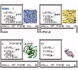Hall of Fame records are again stored per individual Pokémon. Each uniquely indexed record now holds the Pokémon's species, level, IVs, Trainer ID number and nickname. Although the IVs are not visible, they are used to display the Pokémon's gender, alternate color, and Unown form, if any of the three apply to the given specimen. The Pokémon's index number is also displayed; however, this value is generated from the record's species index itself.