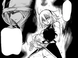 After Ryouga punches Hariru into a building, Miruto is seen emerging from the smoke in his place, making Ryouga freeze in shock. Suddenly, "Miruto" kicks Ryouga and sends him flying. The real Miruto informs Ryouga that Hariru is using Zorua's Illusion Ability to take on her form. The two continue battling and Hariru constantly confuses Ryouga throughout the battle with his illusionary abilities, ranging from taking on the appearance of someone else, to transforming items into something else to fool him into attacking it.