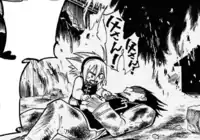 Eventually, their battle comes to a close when Ryouga uses the last of his remaining strength to fire one last attack at Hariru. Hariru confidently attempts to block the attack only to hear Carola's pained screams for him in the distance, distracting him long enough to be hit by the attack. Hariru emerges from the smoke and falls down defeated while Ryouga tiredly looks over him, eventually falling over unconscious for using all his energy in his last attack.