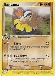 Hariyama (Japanese: ハリテヤマ Hariteyama) is a Fighting-type Stage 1 Pokémon card. It is part of the EX Ruby & Sapphire expansion.
