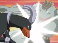 During Harrison's battle with Ash in Can't Beat the Heat!, Houndoom came out as his fifth Pokémon to fight Snorlax, who had already taken down Hypno and Steelix with little effort. It proved to be very powerful, using Counter to reflect Hyper Beam back onto it at double the strength, knocking out Snorlax in a single hit.