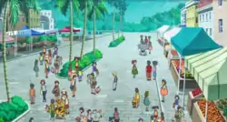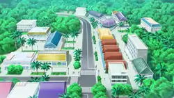 Hau'oli City appeared in The Grand Entrance and Delivery Boy Sun. Moon traveled to Hau'oli City from Sinnoh to deliver a Rotom to Professor Kukui. While on the Beachfront, Moon met Sun, a boy who was doing part-time work throwing wild Pyukumuku back into the sea, his goal being to amass one million dollars by any means possible. After agreeing to help deliver Rotom, Sun transported Moon through Hau'oli City, where she met some of the city's residents.