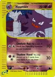 Haunter (Japanese: ゴースト Ghost) is a Psychic-type Stage 1 Pokémon card. It is part of the Skyridge expansion.