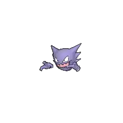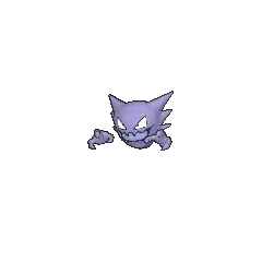 Haunter hides in very dark places, such as caves, and is afraid of light. If a human or a Pokémon comes near Haunter, it will stalk the victim while floating and beckon it to come closer. Once approached it will then lick the victim with its gaseous tongue, inflicting convulsions in the victim that last until death. Despite its predatory nature, it has been known to entertain and prank people in the anime. Additionally, it has even been shown to feel intense loyalty to a deceased Trainer. In the past, Night Shade was its signature move.