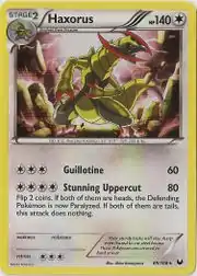 Haxorus (Japanese: オノノクス Ononokus) is a Colorless-type Stage 2 Pokémon card. It is part of the Dark Explorers expansion.